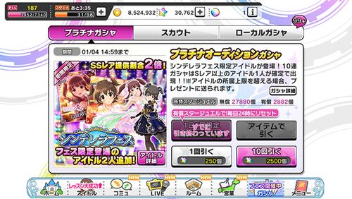 デレステで初めて天井まで回したのでその記録。 前提として、自分が特に好きなアイドルは9人で、 小日向>卯月・みりあ>乙倉ちゃん・響子>忍ドル・中野>ユッコ・ありす である。 1月~3月にかけて、みりあ、響子、乙倉ちゃんの復刻ラッシュのため、なるべ…